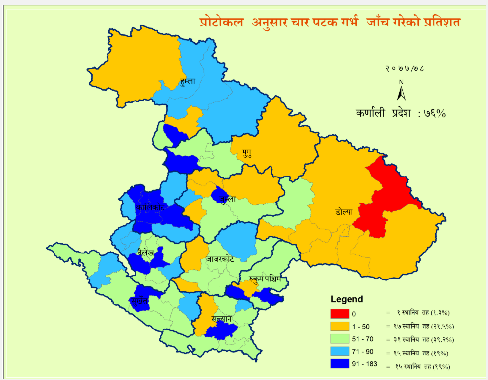 प्रोटोकल अनुसार चार पटक गर्भ जाँच गरेको प्रतिशत